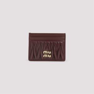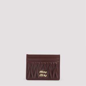 Women > Accessories > Wallets Miu Miu Bordeaux Lamb Leather Cardholder. Crafted from bordeaux lamb leather, tonal matelass leather insert, golden-toned metal logo2 on the front. Two front card slots and three on the back.