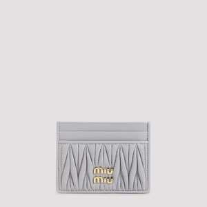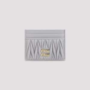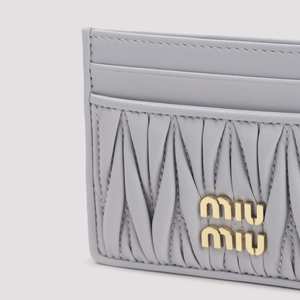 Women > Accessories > Wallets Miu Miu Glicine Lamb Leather Cardholder. Crafted from glicine lamb leather with a tonal matelass leather insert and a golden-toned metal logo2 on the front. Two front card slots and three on the back.