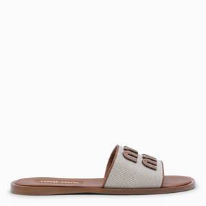 Women > Shoes > Flat Shoes Brown leather flats from Miu Miu featuring a round open toe, open back, upper logo2, and a flat rubber sole. Composition: Upper, 100% Leather. Sole, 100% Elastodiene.