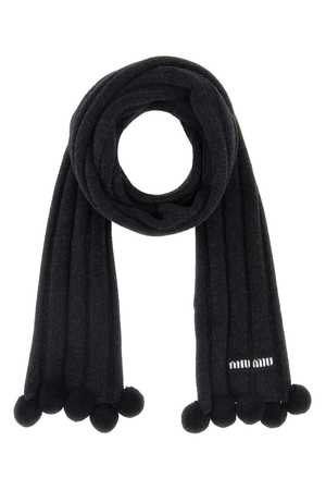 Women > Accessories > Scarves & Wraps Charcoal wool-blend scarf from Miu Miu.