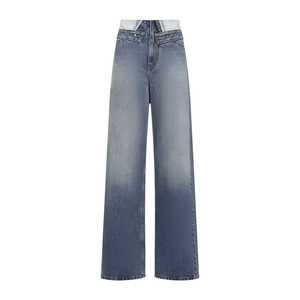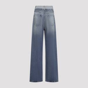 Women > Clothing > Jeans MM6 Maison Margiela 5-pocket light blue cotton denim jeans. Wide-leg style crafted from washed light blue cotton denim, featuring a high waist with turn-up and raw-cut details, 5-pocket construction, front button and zip-fly fastening, and the signature white stitching at the back.