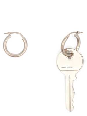 Women > Jewelry "Earring Key" hoop earrings in antiqued-effect metal with a key charm engraved with the "Numeric Signature MM6" and a clip closure. ITEM CANNOT BE RETURNED. Composition: 100% Brass.