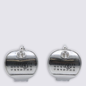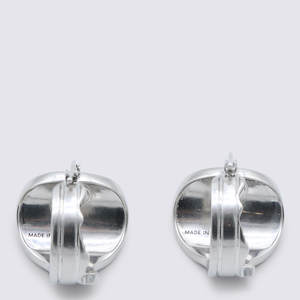 Women > Jewelry > Earrings Silver brass earrings from MM6 Maison Margiela featuring silver-tone brass, frontal logo2 detail, and back fastening. Composition: 100% Metallic Fiber.