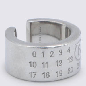 Women > Jewelry > Earrings Silver-tone brass earrings from MM6 Maison Margiela featuring a frontal logo2 detail and back fastening. Composition: 100% Brass.