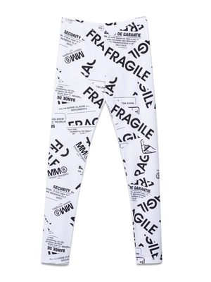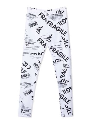These kids' unisex pants from MM6 Maison Margiela are made from 90% cotton and 10% elastane. Made in Portugal.