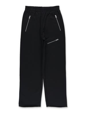Girls > Clothing > Bottoms These jogger trousers by MM6 Maison Margiela Kids showcase a clean silhouette enhanced by bold zip details, adding an edgy urban twist. Crafted in soft cotton and designed for relaxed comfort, they're the perfect pick for young trendsetters with a love for minimal yet statement-making pieces. - Elasticated waistband - Three metallic zipped pockets - Straight hem - Tone-on-tone logo2 print at front - Line stitch at back - Relaxed fit Composition: 100% cotton.