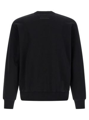 Men > Clothing > Fleeces & Tracksuits > Fleeces Brushed cotton sweatshirt with front "Numeric Signature MM6" patch and contrast spray paint spot, crew neck, long sleeves with cuffs and dropped shoulders, and "White Stitch Line" at the back. Composition: 66% cotton, 34% polyester.
