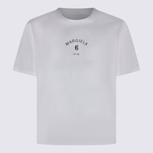 Men > Clothing > Topwear > T-Shirts White cotton T-shirt from MM6 Maison Margiela featuring short sleeves, a round collar, frontal logo2 stamp and a regular fit. Composition: 100% Cotton.