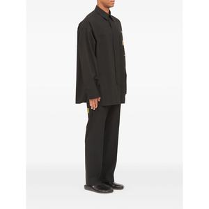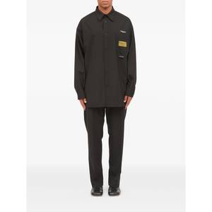 Men > Clothing > Shirts Black shirt with chest pocket, button fastening, long sleeves, point collar, and tonal stitching.