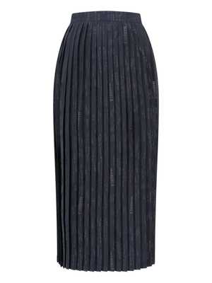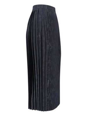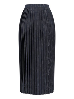 Women > Clothing > Skirts MM6 Maison Margiela pleated midi skirt in a black viscose blend with a high waist, all-over tone-on-tone graphic print, side zip closure, iconic stitching at the back, and a straight hem. Composition: 58% Acetate, 42% Viscose.