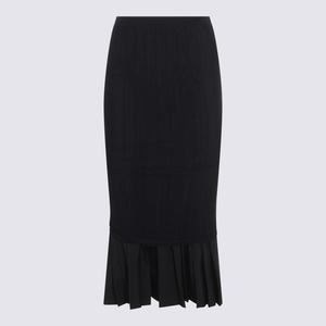 Women > Clothing > Skirts Black wool skirt from MM6 Maison Margiela featuring a high waist with draped and pleated details and a regular fit. Composition: 55% Polyester, 45% Virgin Wool. Secondary fabric: 92% Polyamide, 8% Elastane.