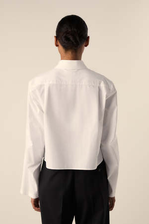 This cropped cotton is cut with slightly flared long sleeves and features raw edges, front button fastening and a classic collar. - COTTON 100% - Made in Italy - Hand wash