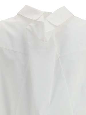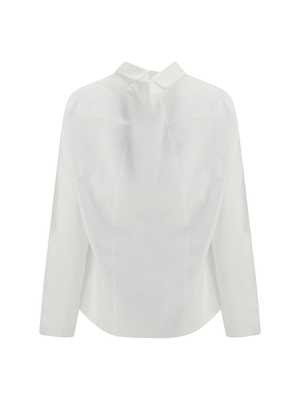 Women > Clothing > Topwear > Shirts The long-sleeved shirt by MM6 Maison Margiela plays with the illusion of layering, designed to mimic the effect of two garments worn together. A pointed collar and button-front fastening preserve a sense of essential elegance, while the raw-cut hem adds a contemporary edge. The embroidered MM6 numeric logo2 on the front serves as a distinctive hallmark, balanced by the Maison's signature white horizontal stitch on the back. Composition: 100% Cotton