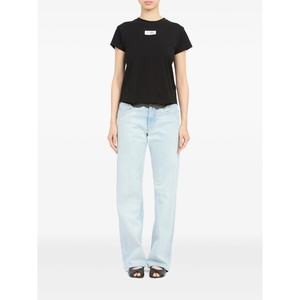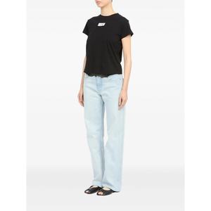 Women > Clothing > Topwear > T-Shirts Black T-shirt with round neck, short sleeves, label detail, straight hem, and tonal stitching.