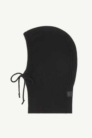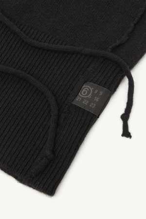 A reinterpretation of the classic balaclava, this knitted hood draws on MM6s Reduced Panel concept stitched seams reduce volume without removing excess fabric, leaving the making process exposed. Ribbed panels frame the face and neck, finished with the numeric signature label at the back. - 80% Wool, 20% Polyamide - Knit hood - Ribbed hem and face opening - Reduced panel construction - Drawstring fastening - Numeric signature label at the back