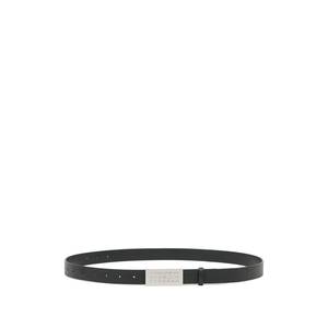 Women > Accessories > Belts Black calf leather belt featuring plaque detail, adjustable length, pin buckle fastening, and silver-tone hardware.
