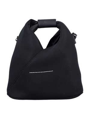 Women > Bags > Shoulder Bags Japanese Crossbody Bag by MM6 Maison Margiela. Featuring: - Mesh fabric construction - Ergonomic top handle with leather detail - Press-stud closure - Adjustable and detachable leather shoulder strap - Maison Margiela stitch detailing Height: 24 cm Width: 21 cm Depth: 11 cm Composition: 60% polyester, 40% polyurethane.