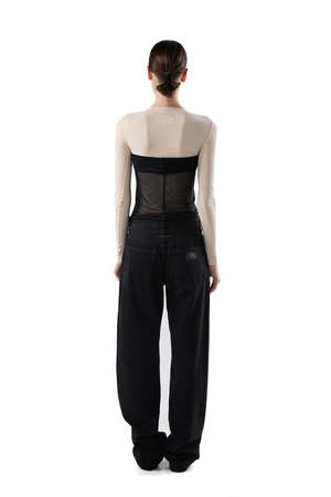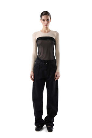 This gathered denim is high-rise and comes with gathered detailing and a relaxed fit. 100% Cotton.