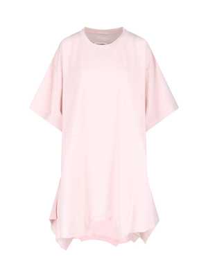 Women > Clothing > Dresses Maison Margiela MM6 asymmetrical pink cotton dress with crew neck, short sleeves, dropped shoulders, and an asymmetrical hem. Composition: 100% Cotton.