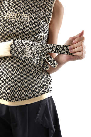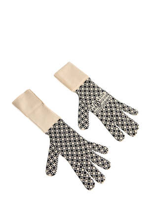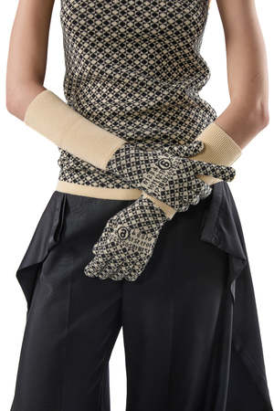 Recalling alpine archetypes, these knitted gloves reinterpret the graphic claritys of classic Nordic patterns. The high-contrast motif runs throughout, broken only by smooth ivory ribbed cuffs. The houses numeric emblem is subtly woven into the palm, grounding the piece in MM6 identity. 100% Cotton Secondary fabric: 97% cotton, 2%.