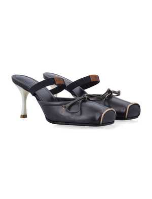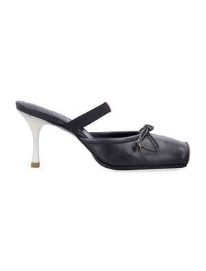 Women > Shoes > Flat Shoes Refined and contemporary, these MM6 Maison Margiela mules feature a square-toe design and a curved heel for an elevated silhouette. A soft front panel is accented with a delicate bow, while the branded MM6 numerics strap adds a signature touch of style. Curved block heel Square toe with bow detail Soft leather upper Branded MM6 strap Slip-on mule style Heel: 8 cm Composition: Upper, 100% bovine leather. Lining, 100% bovine leather. Sole, 100% bovine leather.