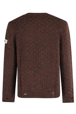 The MM6 Maison Margiela Crewneck Sweater features a multicolor brown design with long sleeves and a classic crew neckline.