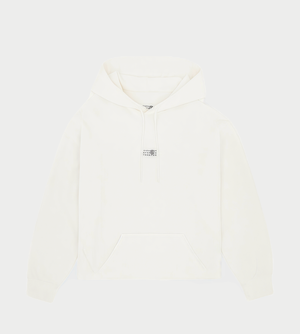 Cut from cotton jersey, this relaxed hooded sweatshirt finds edge in the details. A raw-cut hem contrasts with the soft structure, while a kangaroo pocket and dropped shoulders add ease. Finished with the MM6 numeric artwork at the chest and the white stitch line at the back. Vendor Color: White. Vendor Style: S62GU0142M25024101. Fabrication: 100% Cotton. Made in Italy.