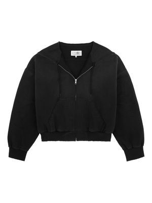 Women > Clothing > Fleeces & Tracksuits > Fleeces Black cotton hoodie with dropped shoulders, drawstring hood, front pouch pocket, and tonal artwork flag. Composition: 100% Cotton.