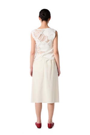 This sleeveless distressed and slashed top features a boat neck in a semi-sheer construction. Regular fit. 100% Cotton. Made in Italy. Hand wash.