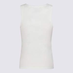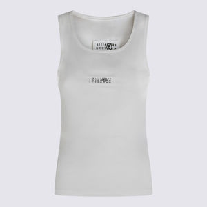 Women > Clothing > Topwear > Tank Tops White cotton tank top from MM6 Maison Margiela featuring a round neck, sleeveless cut, frontal logo2 patch, and regular fit. Composition: 98% Cotton, 2% Elastane.
