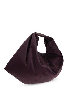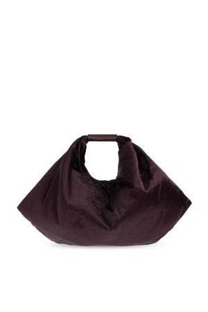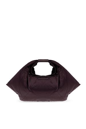 Discover a striking blend of conceptual artistry and modern refinement with this handbag from the MM6 Maison Margiela collectsion. Crafted for both versatility and statement style, its bold, geometric shape boasts elegantly soft, triangular lines and a generously wide base, effortlessly narrowing to a structured handle. The outer materialan exquisitely soft, subtly lustrous fabric reminiscent of satin or crisp cottonexudes both resilience and understated luxury. The short, structured handle, rendered in matching violet-hued leather or its refined equivalent, is accented by an embossed designer logo2, reflecting the collectsion's youthful, avant-garde spirit. Perfectly unisex, this shopper marries everyday function with Maison Margiela's signature conceptual edge, making it an exceptional addition to any discerning wardrobe. Composition: 57% Cotton 43% Viscose