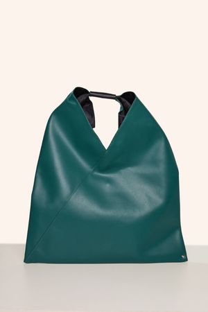 This Japanese tote bag features a flat top handle, a pyramid body and a snap fastening - Eco leather 100% - Made in Italy