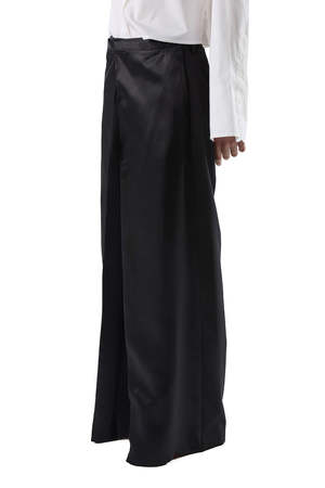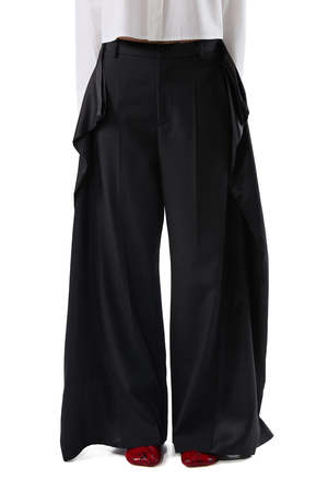 These panelled trousers feature a satin panel and a front pleat. Composition: 55% Polyester, 45% Virgin Wool.