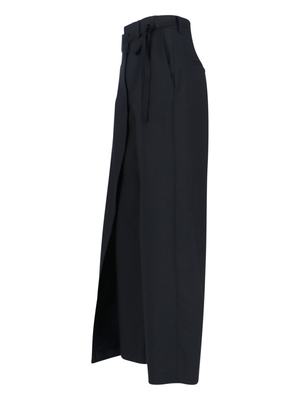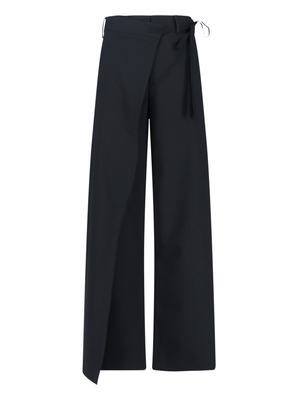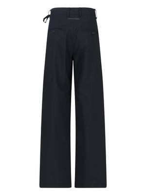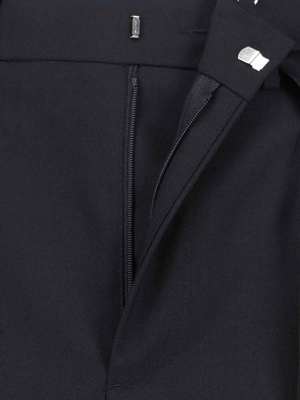 Women > Clothing > Pants & Shorts > Pants MM6 Maison Margiela tailored trousers in black fabric with front zip and hook closure, belt loops, front fastening detail, back welt pocket, contrasting stitching at the back, and a straight leg. Composition: 54% Polyester, 44% Wool, 2% Elastane.
