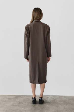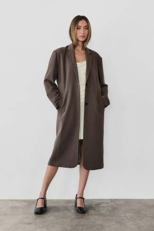 The Solara Coat is a tailored single-breasted coat complete with three front welt pockets, shoulder pads, and a back slit. Meant to be oversized as a layering piece, it's a timeless wardrobe staple you'll wear on repeat. Style Number: OR1026 Self: 80% Polyester, 16% Rayon, 4% Spandex Lining: 100% Polyester