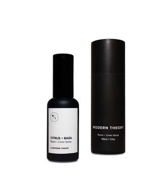 Modern Theory | Citrus + Basil Room Spray Infuse your home, textiles, laundry, and apparel with spritzes of our signature fragrances. A robust citrus blend with mid notes of basil, geranium, and cyclamen. Base notes of musk, amber, and warm woods. - Crafted with premium, non-toxic, phthalate-free fragrances - 50ml / 1.7oz - Made in the USA - Recyclable/reusable packaging