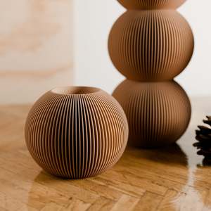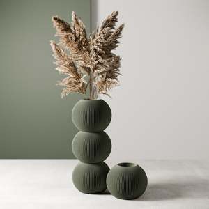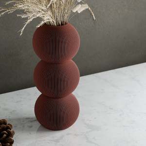 The Bubble Vase by Modernized Pottery features a playful, stacked spherical design inspired by bubbles and a refined ribbed texture that adds visual interest and depth. It serves as a modern centerpiece for any floral arrangement and a stylish way to display your favorite blooms. Crafted from 98% plant-based materials (bioplastic and wood fibers), this vase includes a removable waterproof insert, making it fully watertight and practical for everyday use. It is available in multiple sizes to suit different spaces and arrangements. Product Features: - Playful, stacked spherical design inspired by bubbles - Refined ribbed texture for modern visual appeal - Fully watertight with a removable waterproof insert - Made from 98% plant-based materials (bioplastic and wood fibers) - Available in multiple sizes Product Specifications: - Triple Vase: Height 9.25 inches | Width 3.7 inches | Depth 3.7 inches - Double Vase: Height 6.17 inches | Width 3.7 inches | Depth 3.7 inches - Single Vase: Height 3.09 inches | Width 3.7 inches | Depth 3.7 inches