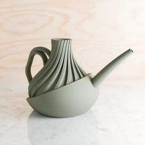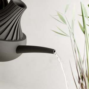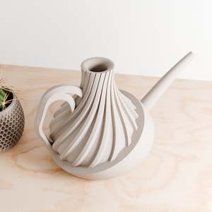 The REVOLVE Watering Can by Modernized Pottery is a unique and functional design meant for both indoor and outdoor gardening. Its elongated, graceful spout ensures precise watering, while the sleek, twisting silhouette with smooth curves balances ergonomics with style. Color and size options can be customized to match your decor preferences. Dimensions: Small: Height: 5.6 inches, Width: 9 inches, Depth: 6 inches Large: Height: 7.3 inches, Width: 7.8 inches, Depth: 11.8 inches This watering can is crafted from an eco-conscious and plant-based material composed of bioplastic derived from corn (60%) and recycled wood fibers (40%). This sustainable material imparts an authentic appearance, texture, and distinctive aroma of natural wood. The structure is optimized for easy fabrication and minimal material use without sacrificing durability. Made to order in Texas.