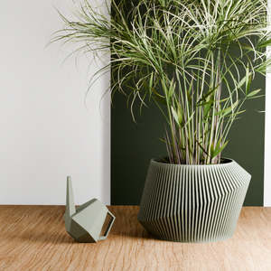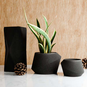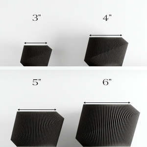 Sizes: Large: Height: 65.8 inches | Width: 8.8 inches Medium: Height: 4.8 inches | Width: 7.3 inches Small: Height: 4 inches | Width: 6 inches X-Small: Height: 2.9 inches | Width: 4.4 inches The Urban Planter captures the clean, architectural lines of modern cityscapes, offering a bold and sophisticated addition to any room. With its striking angular design and textured surface, this planter serves as both a stylish statement piece and a perfect home for your plants. The drip tray/saucer is custom-fitted and designed to perfectly complement the planter. Made from 98% Plant-Based Materials / BioPlastic / Wood Fibers.