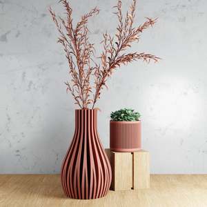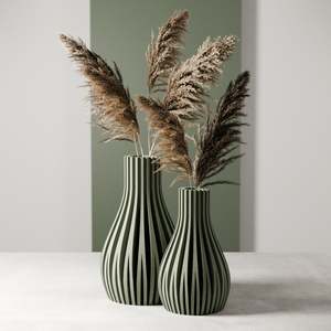 Sizes: Large: Height: 10 inches | Width: 6 inches Medium: Height: 8 inches | Width: 4.8 inches The Willow Vase was designed to reflect the graceful, flowing movement of nature, inspired by the elegant curves of weeping willow branches. Its slender silhouette and ribbed texture add a refined, organic touch to any space, making it a sophisticated and timeless choice for displaying your floral arrangements. Fully watertight when using the removable waterproof insert. Made from 98% plant-based materials: bioplastic & wood fibers.