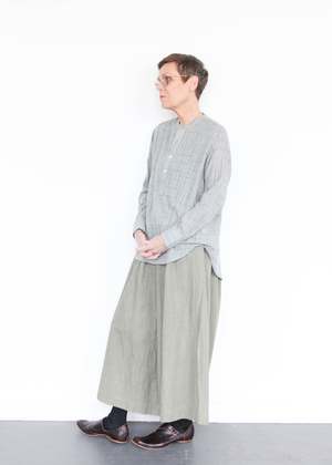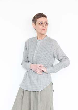 Soft cotton shirt with band collar and button detail at neck. 100% Handloom Cotton made in India