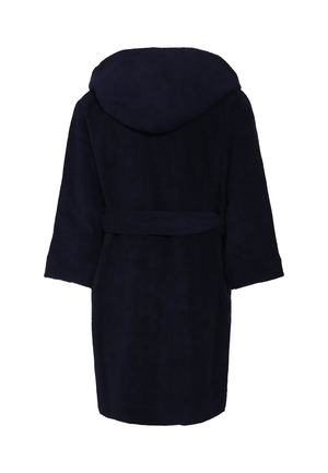 Boys > Accessories & Gifts Blue bathrobe in soft terry, with hood, long sleeves, waist belt, and pockets applied on the front. Made of GOTS certified organic cotton. Embellished with a logo2 patch on the side. 100% Organic Cotton. Machine wash at 30C.