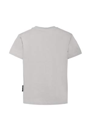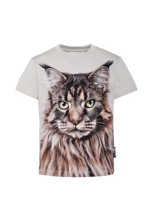 Boys > Clothing > Topwear > T-Shirts & Polo Shirts Beige t-shirt in heavy organic cotton, GOTS certified, with short sleeves and a ribbed crew neck. It is embellished with a cat print on the front. 100% Organic Cotton. Machine wash at 30C.