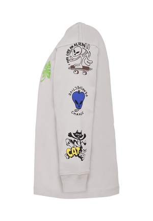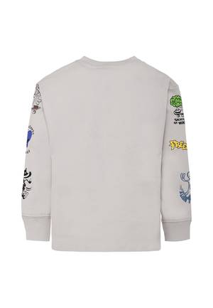 Boys > Clothing > Topwear > T-Shirts & Polo Shirts Grey t-shirt in GOTS certified organic cotton, with long sleeves, crew neck and ribbed cuffs. It is decorated with a clover print on the chest and multicoloured designs on the sleeves. 100% Organic Cotton. Machine wash at 30C.
