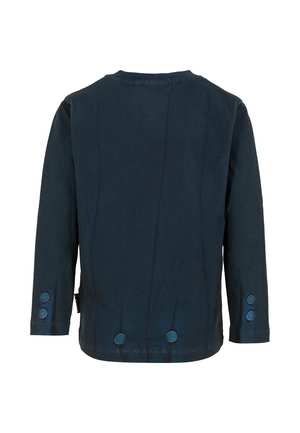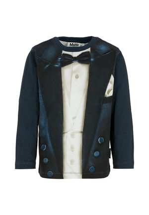 Boys > Clothing > Topwear > T-Shirts & Polo Shirts Blue t-shirt in GOTS-certified organic cotton, with long sleeves and a ribbed crew neck. It is embellished with a tuxedo print on the front. 100% Organic Cotton. Machine wash at 40C.