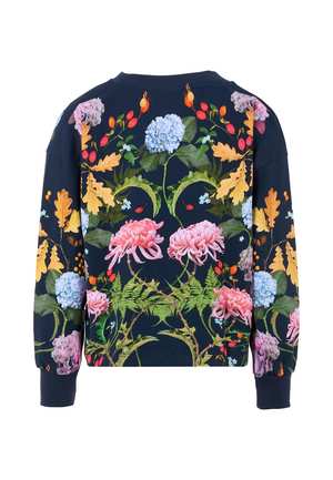 Girls > Clothing > Topwear > T-Shirts & Polo Shirts Blue t-shirt in GOTS certified organic cotton blend with long sleeves, ribbed crew neck, and asymmetric hem. Embellished with a rabbit print on the front and all-over flowers. 95% Organic Cotton, 5% Elastane. Machine wash at 40C.