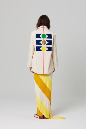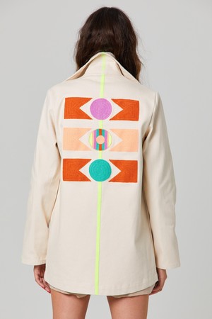 Chain stitched jackets made from pre-shrunk, 100% cotton duck canvas material. Organically dyed threads. Dry clean only. XS - Navy/Green/Yellow, S - Orange/Pink, M - Orange/Pink, L-Navy/Green/Pink