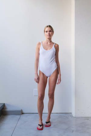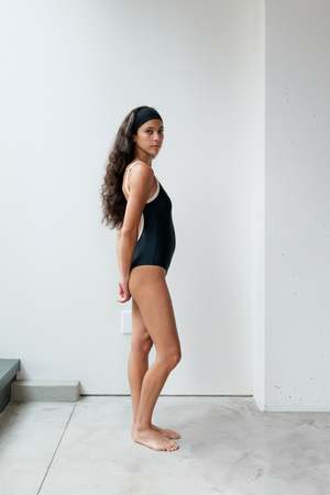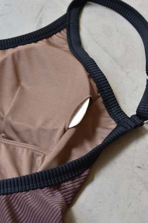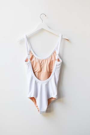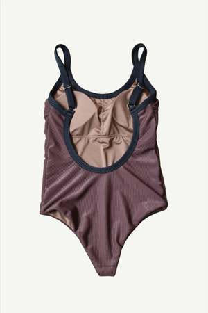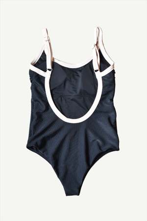 Monamour's signature back open one-piece in at Dawn. exclusive colors. - at Dawn. x Monamour collaboration item - Contrasting piping - Scooped Back - Ribbed texture Details 87% Recycled Polyester, 13% Spandex Lining: 90% Polyester, 10% Spandex Hand wash cold Made in Indonesia Sizing Model is 5'7" (170cm) and wearing size M.