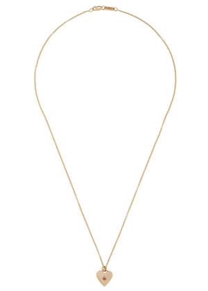 A delicate heart charm with a ruby in a star setting. Materials: Sterling Silver Length: 16", 18"
