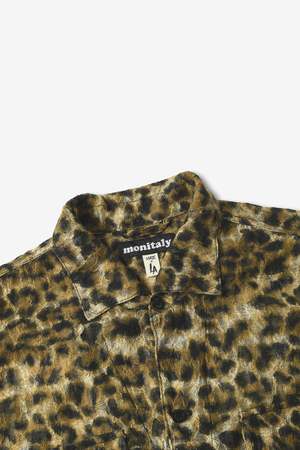 The 50's Milano Shirt S/S in Beach Leopard by Monitaly. Made from 100% polyester.